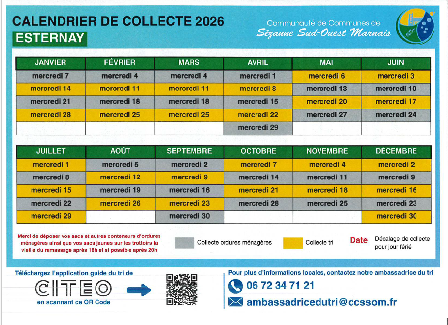 La déchèterie est située Rue des Noues 51310 ESTERNAY.